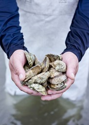 He explains the myriad environmental benefits of oyster farming as he sorts through his harvest, expertly discarding subpar specimens. “Oysters are a keystone species. They filter out particulates, improving water quality, which is good for the entire ecosystem. The beds support biodiversity and help restore decimated wild oyster populations. They’re also a highly sustainable source of protein.” He shucks a couple of the large, gnarled bivalves and hands one to me. We toast shells and swallow their briny contents. Ryan is all smiles as he explains that his company Oysters Carolina delivers all over the state and offers free oysters to low-income families with no minimum order, which eliminates waste and encourages people to try something they might otherwise not. I leave Ryan to his valuable work after one more oyster for the road.