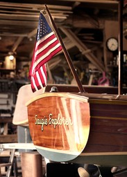 The next morning, I make my way to Budsin Electric Boats in Marshallberg. Owner Tom Hesselink warmly welcomes me into his workshop. Bright sawdust particles are suspended in the sunlight and fresh cut lumber perfumes the air. Tom and his highly trained craftsmen build a range of elite wooden electric launches, the pedigree of which is clear from his yearlong waiting list.