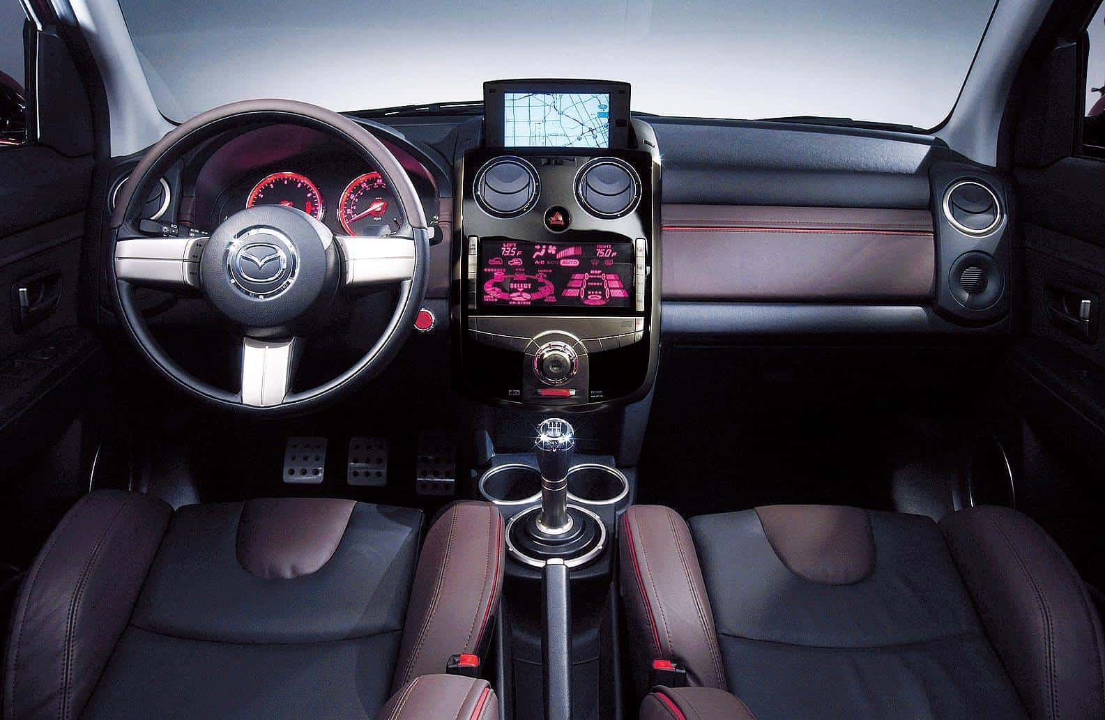 This funky concept made its debut at the 2004 Detroit Auto Show. Featuring a four-cylinder engine, the car would signpost the way for a small city vehicle aimed at a young audience. The MX‑MicroSport featured a keyless entry system in the form of a card, which held driver preferences such as favorite navigational routes and audio sources.