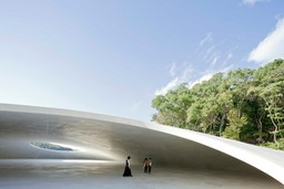 Top: Aerial view of Teshima Island. Image: Iwan Baan; Middle: Viewing the Matrix. Image: Iwan Baan; Bottom: Matrix, 2010, Teshima Art Museum, Kagawa. Image: Noboru Morikawa.