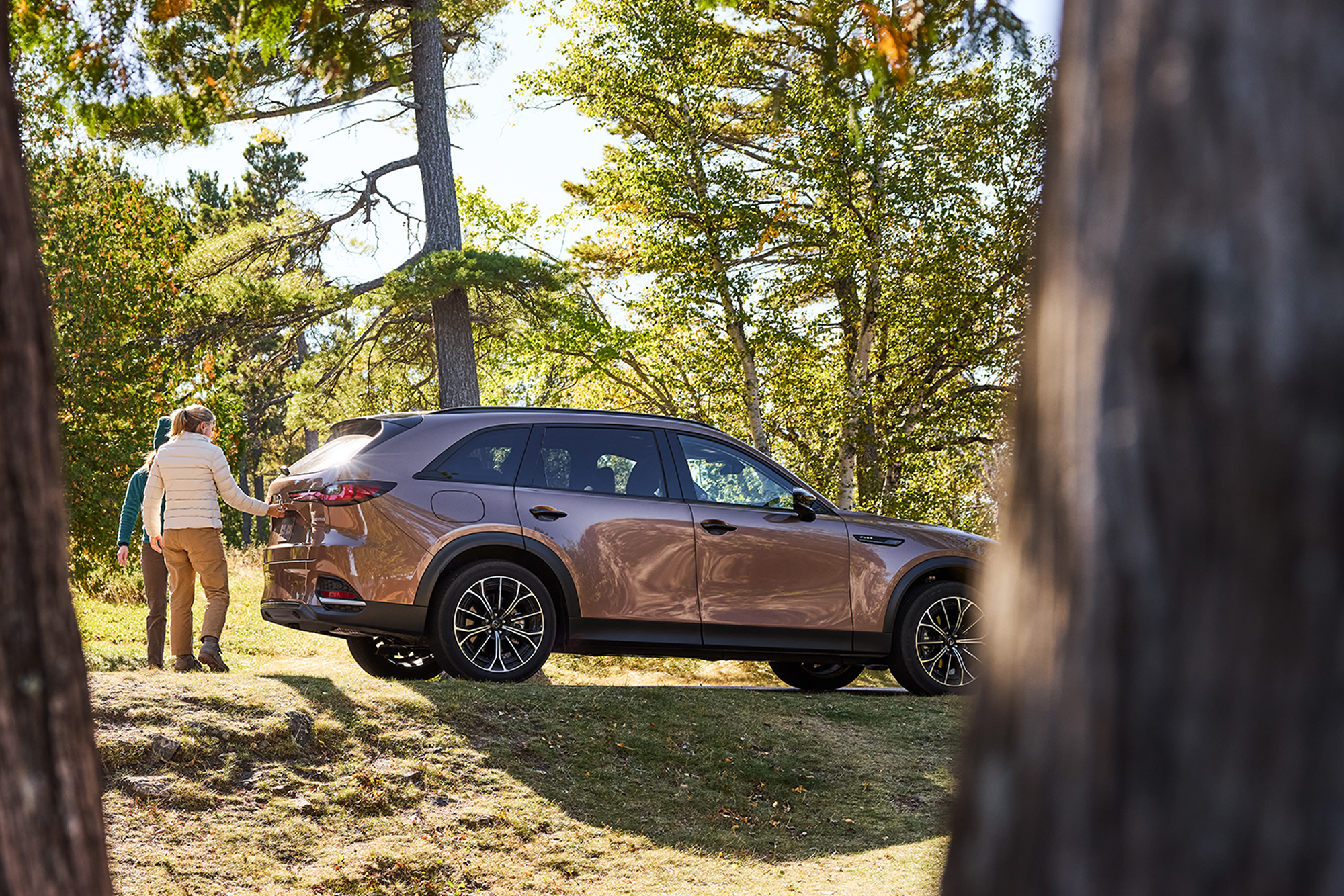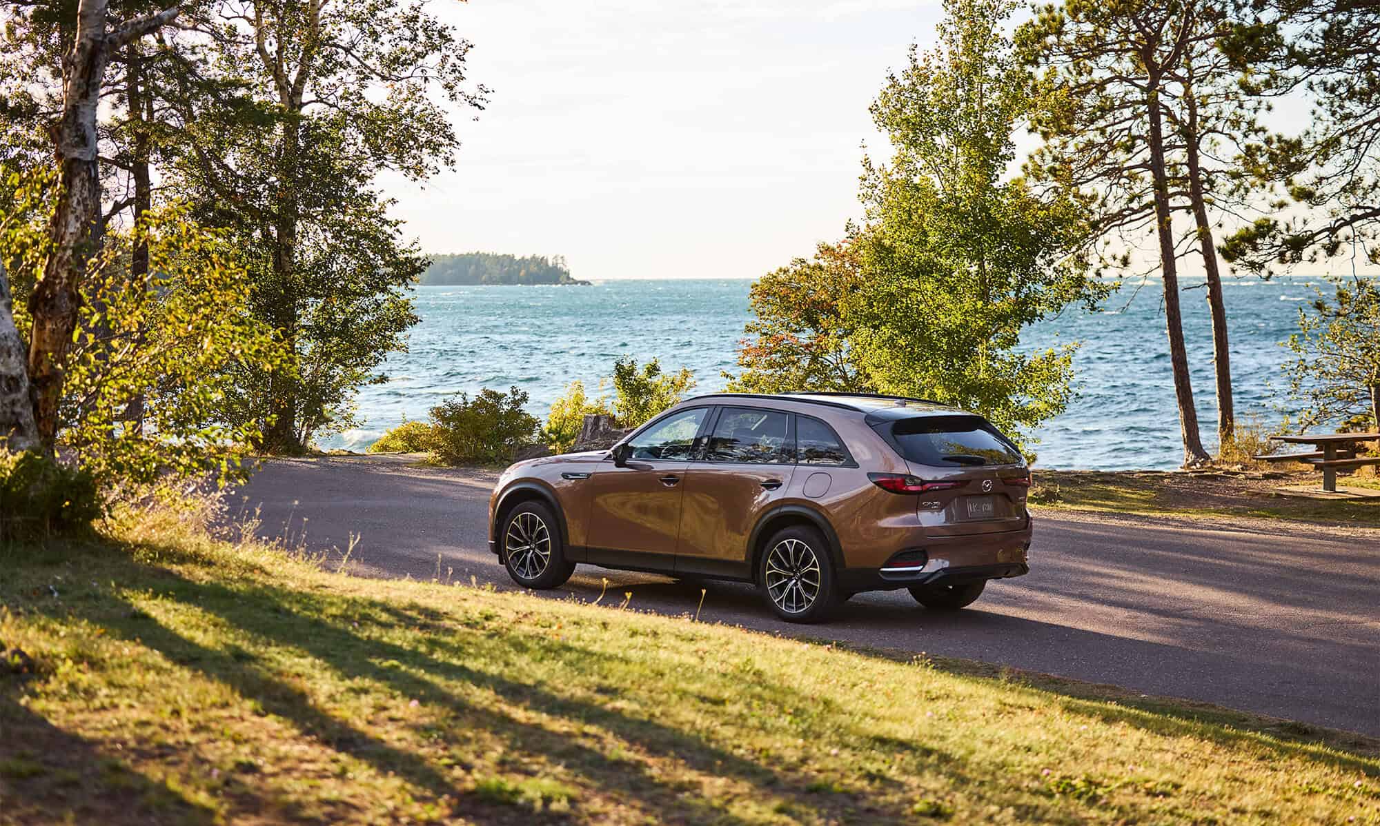 From the viewpoint, the first sunrays dapple the tops of the trees. The stripes of light captivate Beth. She grabs her camera. I breathe in the fresh air—a crisp mix of the unsalted lake and forested mountain—and slide my smartphone from the CX-70’s Wireless Charging Pad.