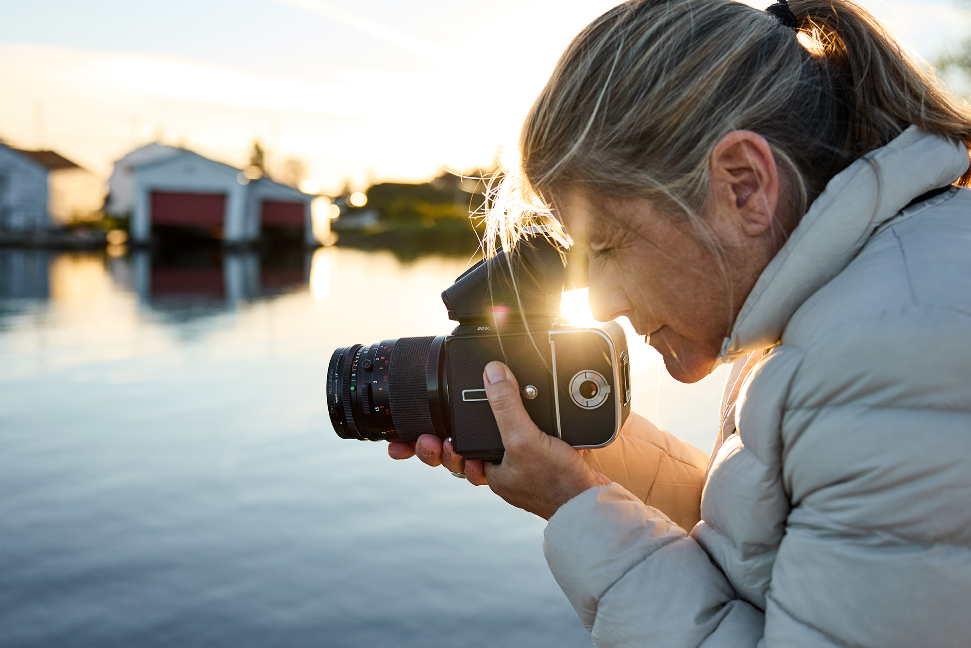 We begin to wander, each in our own direction, each with our own eye. I home in on the details of my experience—what I’m witnessing, what I wish to capture—and line up a few photos of the beautiful, rugged environment. Out here, among a rocky beach strewn with birch tree bark, I find my footing with this new-to-me camera in a new-to-me place.