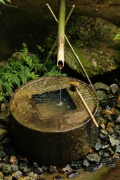 Opposite the stone garden is a square water basin. Its kanji characters loosely translate as “I am content with what I am.”